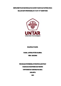 Penelitian ini merupakan penelitian yang bertujuan untuk meneliti penerapan pertimbangan yang digunakan oleh auditor pada KAP Annisa atas suatu materialitas audit laporan keuangan tahunan 2022 berupa studi kasus pada klien perusahaan yang bergerak di bidang start-up. Hasil penelitian menunjukkan bahwa pertimbangan dalam menentukan materialitas pada KAP Annisa telah sesuai dengan SA 320 mengenai “Materialitas dalam Tahap Perencanaan dan Pelaksanaan Audit”. Pertimbangan dalam menentukan mterialitas audit pada KAP Annisa bagi klien pada salah satu start-up ini menggunakan pertimbangan antara lain akun total aset, dengan tingkat materialitas keseluruhan sebesar 0,5%, tingkat materialitas pelaksanaan sebesar 50%, tingkat analytical scope sebesar 25% dan tingkat tolerable error for subtantif test sebesar 5%. Kata kunci: Materialitas, SA 320, Pertimbangan Auditor. The purpose of this research to examine the application of considerations used by auditors at KAP Annisa regarding the materiality of the 2022 annual financial report audit in the form of a case study on a company client operating in the start-up sector. The research results show that the considerations in determining materiality at KAP Annisa are in accordance with SA 320 concerning "Materiality in the Audit Planning and Implementation Stage". Considerations in determining audit materiality at KAP Annisa for clients at one of these start-ups include considerations including total assets account, level of overall materiality amounting to 0,5%, level of performance materiality amounting to 50%, level of analytical scope amounting to 25% and level of tolerable error for subtantif test amounting to 5%.