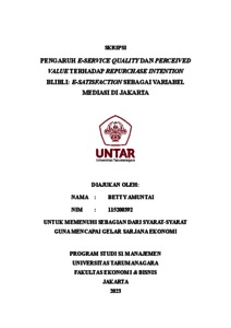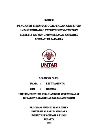Amuntai, Betty (2023) PENGARUH E-SERVICE QUALITY DAN PERCEIVED VALUE TERHADAP REPURCHASE INTENTION BLIBLI: E-SATISFACTION SEBAGAI VARIABEL MEDIASI DI JAKARTA. Skripsi thesis, Universitas Tarumanagara.