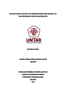 PUTRI, AURORA TESHALONIKA M (2023) ANALISA FAKTOR-FAKTOR YANG MEMPENGARUHI AUDIT REPORT LAG PADA PERUSAHAAN SEKTOR MANUFAKTUR. Masters thesis, Universitas Tarumanagara.