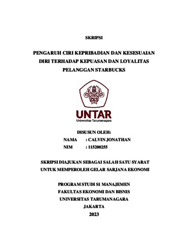 Jonathan, Calvin (2023) PENGARUH CIRI KEPRIBADIAN DAN KESESUAIAN DIRI TERHADAP KEPUASAN DAN LOYALITAS PELANGGAN STARBUCKS. Skripsi thesis, Universitas Tarumanagara.