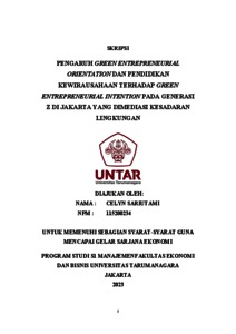Sariutami, Celyn (2023) PENGARUH GREEN ENTREPRENEURIAL ORIENTATION DAN PENDIDIKAN KEWIRAUSAHAAN TERHADAP GREEN ENTREPRENEURIAL INTENTION PADA GENERASI Z DI JAKARTA YANG DIMEDIASI KESADARAN LINGKUNGAN. Skripsi thesis, Universitas Tarumanagara.