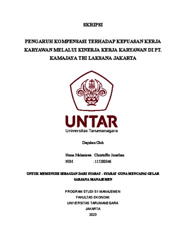 Jonathan, Cristoffer (2023) PENGARUH KOMPENSASI TERHADAP KEPUASAN KERJA KARYAWAN MELALUI KINERJA KERJA KARYAWAN DI PT. KAMAJAYA TRI LAKSANA JAKARTA. Skripsi thesis, Universitas Tarumanagara.