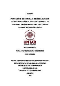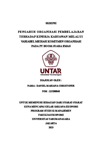 Christofer, Daniel Mariana (2023) P E N G A R U H O R G A N I S A S I P E M B E L A J A R A N TERHADAP KINERJ A KARYAWAN MELALU I VARIABEL MEDIASI KOMITMEN ORGANISASI PADA PT BOOM JUARA EMAS. Skripsi thesis, Universitas Tarumanagara.