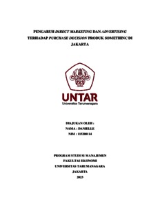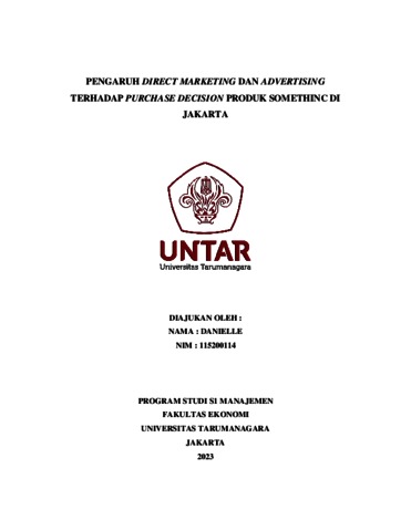 Danielle, Danielle (2023) PENGARUH DIRECT MARKETING DAN ADVERTISING TERHADAP PURCHASE DECISION PRODUK SOMETHINC DI JAKARTA. Skripsi thesis, Universitas Tarumanagara.