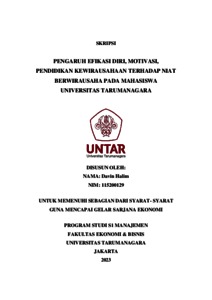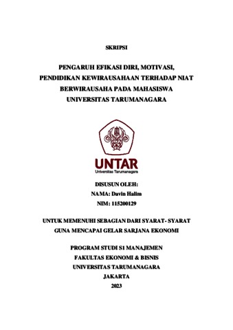 Halim, Davin (2023) PENGARUH EFIKASI DIRI, MOTIVASI, PENDIDIKAN KEWIRAUSAHAAN TERHADAP NIAT BERWIRAUSAHA PADA MAHASISWA UNIVERSITAS TARUMANAGARA. Skripsi thesis, Universitas Tarumanagara.
