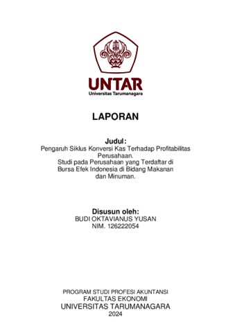 YUSAN, BUDI OKTAVIANUS (2023) Pengaruh Siklus Konversi Kas Terhadap Profitabilitas Perusahaan. Studi pada Perusahaan yang Terdaftar di Bursa Efek Indonesia di Bidang Makanan dan Minuman. Skripsi thesis, Universitas Tarumanagara.