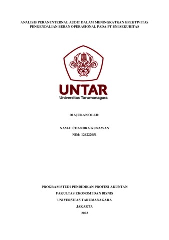 GUNAWAN, CHANDRA (2023) ANALISIS PERAN INTERNAL AUDIT DALAM MENINGKATKAN EFEKTIVITAS PENGENDALIAN BEBAN OPERASIONAL PADA PT BNI SEKURITAS. Masters thesis, Universitas Tarumanagara.