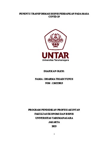YUNUS, DHARMA TRIADI (2023) PENENTU TRANSFORMASI BISNIS PERBANKAN PADA MASA COVID-19. Masters thesis, Universitas Tarumanagara.