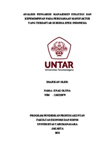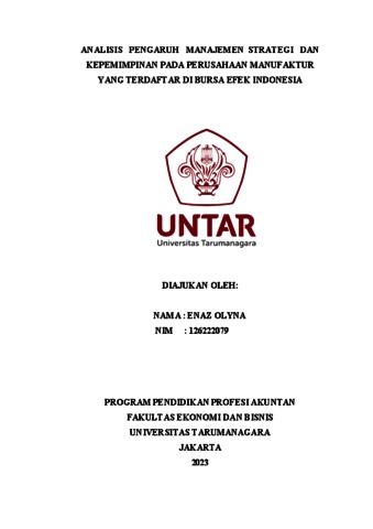 OLYNA, ENAZ (2023) ANALISIS PENGARUH MANAJEMEN STRATEGI DAN KEPEMIMPINAN PADA PERUSAHAAN MANUFAKTUR YANG TERDAFTAR DI BURSA EFEK INDONESIA. Masters thesis, Universitas Tarumanagara.