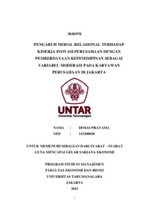 Pratama, Dimas (2023) PENGARUH MODAL RELASIONAL TERHADAP KINERJA INOVASI PERUSAHAAN DENGAN PEMBERDAYAAN KEPEMIMPINAN SEBAGAI VARIABEL MODERASI PADA KARYAWAN PERUSAHAAN DI JAKARTA. Skripsi thesis, Universitas Tarumanagara.
