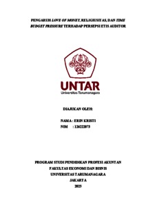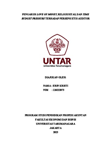 KRISTI, ERIN (2023) PENGARUH LOVE OF MONEY, RELIGIUSITAS, DAN TIME BUDGET PRESSURE TERHADAP PERSEPSI ETIS AUDITOR. Masters thesis, Universitas Tarumanagara.