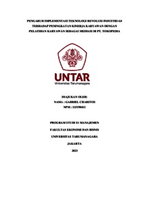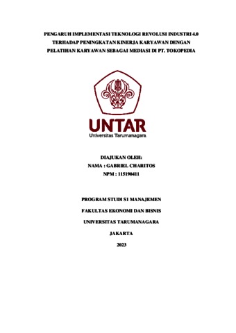 Charitos, Gabriel (2023) PENGARUH IMPLEMENTASI TEKNOLOGI REVOLUSI INDUSTRI 4.0 TERHADAP PENINGKATAN KINERJA KARYAWAN DENGAN PELATIHAN KARYAWAN SEBAGAI MEDIASI DI PT. TOKOPEDIA. Skripsi thesis, Universitas Tarumanagara.
