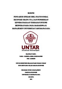 (B) PENGARUH EFIKASI DIRI, STATUS SOSIAL EKONOMI ORANG TUA, DAN PENDIDIKAN KEWIRAUSAHAAN TERHADAP INTENSI BERWIRAUSAHA PADA MAHASISWA S1 MANAJEMEN UNIVERSITAS TARUMANAGARA