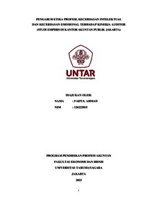 AHMAD, FAIFUL (2023) PENGARUH ETIKA PROFESI, KECERDASAN INTELEKTUAL DAN KECERDASAN EMOSIONAL TERHADAP KINERJA AUDITOR (STUDI EMPIRIS DI KANTOR AKUNTAN PUBLIK JAKARTA). Masters thesis, Universitas Tarumanagara.