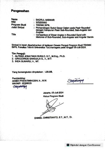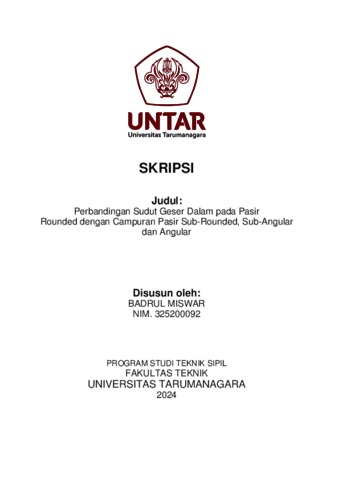 Miswar, Badrul (2024) Perbandingan sudut geser dalam pada pasir rounded dengan campuran pasir sub-rounded, sub-angular dan angular (TS - 2632). Skripsi thesis, Universitas Tarumanagara.