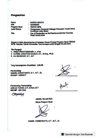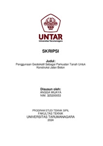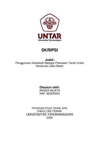 Wijaya, Angga (2024) Penggunaan geotekstil sebagai perkuatan tanah untuk konstruksi jalan beton (TS - 2635). Skripsi thesis, Universitas Tarumanagara.