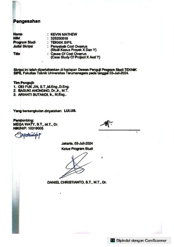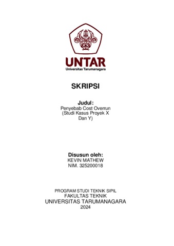 Mathew, Kevin (2024) Penyebab cost overrun (studi kasus proyek x dan y) TS - 2638). Skripsi thesis, Universitas Tarumanagara.