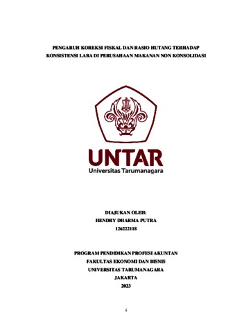 PUTRA, HENDRY DHARMA (2023) PENGARUH KOREKSI FISKAL DAN RASIO HUTANG TERHADAP KONSISTENSI LABA DI PERUSAHAAN MAKANAN NON KONSOLIDASI. Masters thesis, Universitas Tarumanagara.