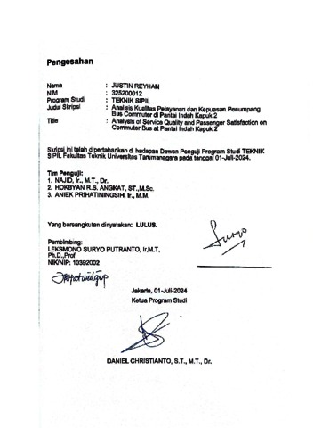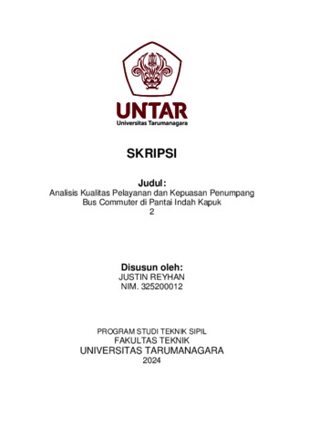 Reyhan, Justin (2024) Analisis kualitas pelayanan dan kepuasan penumpang bus commuter di Pantai Indah Kapuk 2 (TS - 2653). Skripsi thesis, Universitas Tarumanagara.