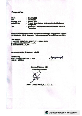 Jose, David (2024) Analisis beban lateral siklik pada fondasi gabungan tiang-rakit (TS - 2661). Skripsi thesis, Universitas Tarumanagara.