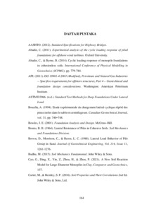 Combined Piled-Raft Foundation merupakan jenis fondasi yang menggabungkan kelebihan dari fondasi dalam/tiang dan fondasi dangkal. Jenis Fondasi ini mampu menahan beban aksial struktur bangunan bertingkat tanpa mengalami penurunan yang signifikan. Dengan ditambahnya fondasi rakit sebagai kepala tiang, mampu membantu fondasi tiang dalam menahan beban sehingga jumlah tiang maupun panjang tiang yang dibutuhkan berkurang. Akan tetapi, fondasi dangkal kurang cocok untuk digunakan menopang beban lateral, sedangkan beban lateral dinamis yang terjadi pada fondasi bisa bernilai besar akibat gempa ataupun angin. Sehingga, penambahan tiang pada fondasi rakit dapat membantu daya dukung struktur bawah terhadap beban lateral, selain itu fondasi tiang juga membantu dalam mengurangi penurunan.Oleh sebab itu, pada skripsi ini akan dilakukan penelitian mengenai daya dukung fondasi tiang-rakit terhadap beban lateral siklik. Dari penelitian ini, dapat disimpulkan bahwa efisiensi kelompok tiang pada pembebanan statik dipengaruhi oleh jarak spasi antar tiang, sedangkan efisiensi kelompok tiang pada pembebanan siklik dipengaruhi oleh jarak spasi dan juga intensitas beban siklik tersebut.