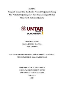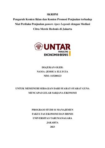 Ellycia, Jessica (2023) Pengaruh Konten Iklan dan Konten Promosi Penjualan terhadap Niat Perilaku Penjualan gamers Apex Legends dengan Mediasi Citra Merek Hedonis di Jakarta. Skripsi thesis, Universitas Tarumanagara.