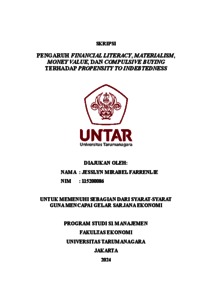 Farrenlie, Jesslyn Mirabel (2023) PENGARUH FINANCIAL LITERACY, MATERIALISM, MONEY VALUE, DAN COMPULSIVE BUYING TERHADAP PROPENSITY TO INDEBTEDNESS. Skripsi thesis, Universitas Tarumanagara.