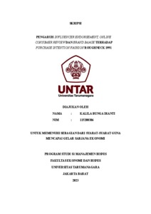 Dianti, Kalila Bunga (2023) PENGARUH INFLUENCER ENDORSEMENT, ONLINE CONSUMER REVIEW DAN BRAND IMAGE TERHADAP PURCHASE INTENTION FASHION ROUGHNECK 1991. Skripsi thesis, Universitas Tarumanagara.