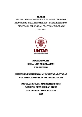 Kata kunci: Wom, Perceived value, Satisfaction, Trust, Repurchase intention