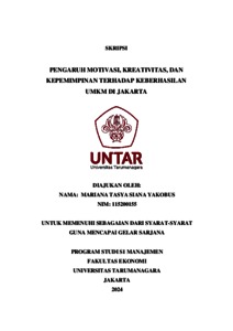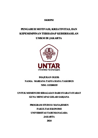 Yakobus, Mariana Tasya Siana (2023) PENGARUH MOTIVASI, KREATIVITAS, DAN KEPEMIMPINAN TERHADAP KEBERHASILAN UMKM DI JAKARTA. Skripsi thesis, Universitas Tarumanagara.