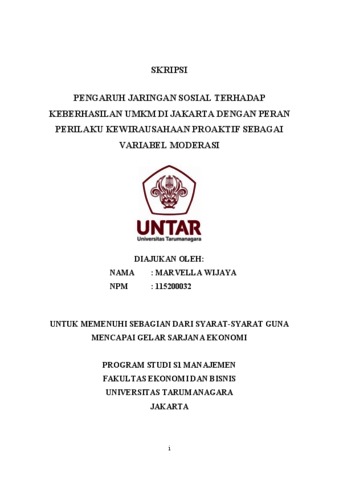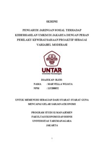 Wijaya, Marvella (2023) PENGARUH JARINGAN SOSIAL TERHADAP KEBERHASILAN UMKM DI JAKARTA DENGAN PERAN PERILAKU KEWIRAUSAHAAN PROAKTIF SEBAGAI VARIABEL MODERASI. Skripsi thesis, Universitas Tarumanagara.