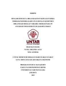 Augi, Melinda (2023) PENGARUH BUDAYA ORGANISASI DAN KEPUASAN KERJA TERHADAP KINERJA KARYAWAN DENGAN KOMITMEN ORGANISASI SEBAGAI VARIABEL MEDIASI PADA PT ANUGRAH TOUR SEMESTA DI JAKARTA BARAT. Skripsi thesis, Universitas Tarumanagara.