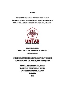 Araujo, Meylani Maia Lay De (2023) PENGARUH KUALITAS PRODUK, KESADARAN KESEHATAN, DAN KETERSEDIAAN PRODUK TERHADAP MINAT BELI: STUDI MIXUE DAN AI-CHA DI JAKARTA. Skripsi thesis, Universitas Tarumanagara.