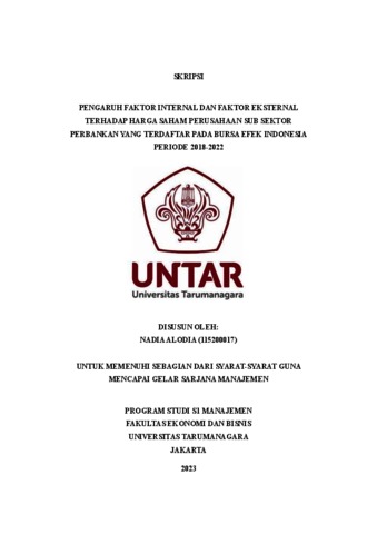Alodia, Nadia (2023) PENGARUH FAKTOR INTERNAL DAN FAKTOR EKSTERNAL TERHADAP HARGA SAHAM PERUSAHAAN SUB SEKTOR PERBANKAN YANG TERDAFTAR PADA BURSA EFEK INDONESIA PERIODE 2018-2022. Skripsi thesis, Universitas Tarumanagara.