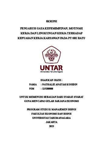 Kosidin, Nathalie Anatias (2023) PENGARUH GAYA KEPEMIMPINAN, MOTIVASI KERJA DAN LINGKUNGAN KERJA TERHADAP KEPUASAN KERJA KARYAWAN PADA PT SRI RATU. Skripsi thesis, Universitas Tarumanagara.