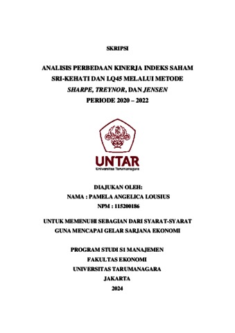 Lousius, Pamela Angelica (2023) ANALISIS PERBEDAAN KINERJA INDEKS SAHAM SRI-KEHATI DAN LQ45 MELALUI METODE SHARPE, TREYNOR, DAN JENSEN PERIODE 2020 – 2022. Skripsi thesis, Universitas Tarumanagara.