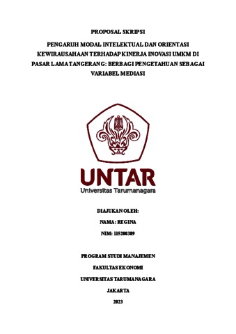 Regina, Regina (2023) PENGARUH MODAL INTELEKTUAL DAN ORIENTASI KEWIRAUSAHAAN TERHADAP KINERJA INOVASI UMKM DI PASAR LAMA TANGERANG: BERBAGI PENGETAHUAN SEBAGAI VARIABEL MEDIASI. Skripsi thesis, Universitas Tarumanagara.