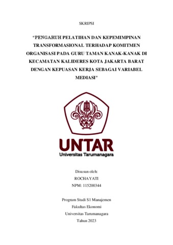 Rochayati, Rochayati (2023) “PENGARUH PELATIHAN DAN KEPEMIMPINAN TRANSFORMASIONAL TERHADAP KOMITMEN ORGANISASI PADA GURU TAMAN KANAK-KANAK DI KECAMATAN KALIDERES KOTA JAKARTA BARAT DENGAN KEPUASAN KERJA SEBAGAI VARIABEL MEDIASI. Skripsi thesis, Universitas Tarumanagara.