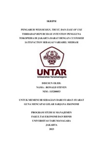 Steven, Ronald (2023) PENGARUH WEB DESIGN, TRUST, DAN EASE OF USE TERHADAP REPURCHASE INTENTION PENGGUNA TOKOPEDIA DI JAKARTA BARAT DENGAN CUSTOMER SATISFACTION SEBAGAI VARIABEL MEDIASI. Skripsi thesis, Universitas Tarumanagara.