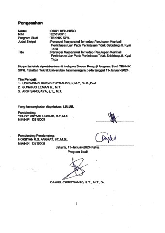 Kenjhiro, Okky (2024) Persepsi masyarakat terhadap penutupan kembali perlintasan liar pada perlintasan tidak sebidang jl. Kyai Tapa (TS - 2682). Skripsi thesis, Universitas Tarumanagara.