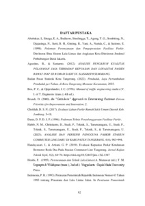 Evaluasi fasilitas parkir stasiun Kereta Rel Listrik Commuter Line Tangerang ditinjau dengan Pedoman Teknis Penyelenggaraan Fasilitas Parkir dengan pembagian kueisioner kepuasan pelanggan terhadap kinerja dan harapan untuk mendapat data primer lalu diolah dengan metode importance performance analysis (IPA) dan data sekunder didapat dari pengumpulan data karcis parkir kendaraan roda dua dan roda empat untuk mengetahui kapasitas ruang parkir, volume parkir, durasi parkir, indeks parkir, tingkat penggantian (turn over) parkir, akumulasi parkir, dan satuan ruang parkir. Evaluasi ini bertujuan untuk mengetahui kepuasan pelanggan, karakteristik tempat parkir stasiun Kereta Rel Listrik Commuter Line Tangerang.Berdasarkan analisis yang telah dilakukan, tempat parkir pada tempat penilitian ini pada hari biasa tidak dapat menampung kendaraan roda dua dan berdasarkan persepsi pengguna dengan metode IPA tempat parkir sudah dinilai cukup baik, namun masih terdapat aspek yang harus diperbaiki atau ditingkatkan seperti ketersediaan atap penutup kendaraan dan kebersihan area parkir.