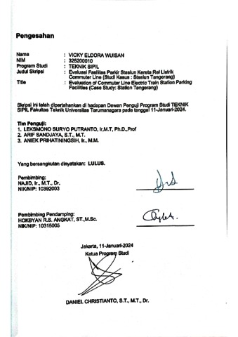 Wuisan, Vicky Eldora (2024) Evaluasi fasilitas parkir stasiun kereta rel listrik commuter line (studi kasus: stasiun Tangerang) (TS - 2683). Skripsi thesis, Universitas Tarumanagara.