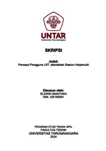 Imantaka, Eldwin (2024) Persepsi pengguna LRT Jabodebek stasiun Harjamukti (TS - 2684). Skripsi thesis, Universitas Tarumanagara.