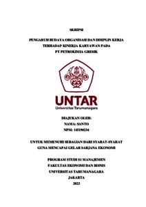 Santo, Santo (2023) PENGARUH BUDAYA ORGANISASI DAN DISIPLIN KERJA TERHADAP KINERJA KARYAWAN PADA PT PETROKIMIA GRESIK. Skripsi thesis, Universitas Tarumanagara.