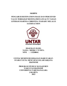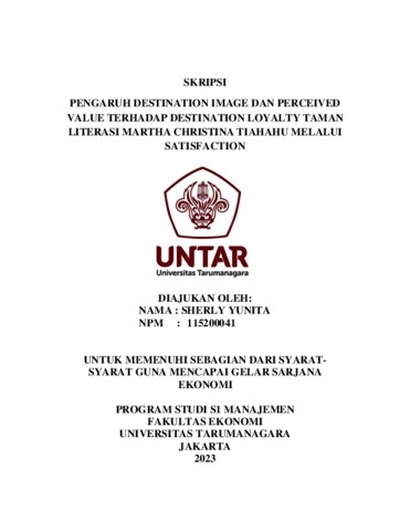 Yunita, Sherly (2023) PENGARUH DESTINATION IMAGE DAN PERCEIVED VALUE TERHADAP DESTINATION LOYALTY TAMAN LITERASI MARTHA CHRISTINA TIAHAHU MELALUI SATISFACTION. Skripsi thesis, Universitas Tarumanagara.