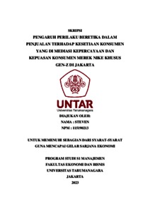 Steven, Steven (2023) PENGARUH PERILAKU BERETIKA DALAM PENJUALAN TERHADAP KESETIAAN KONSUMEN YANG DI MEDIASI KEPERCAYAAN DAN KEPUASAN KONSUMEN MEREK NIKE KHUSUS GEN-Z DI JAKARTA. Skripsi thesis, Universitas Tarumanagara.