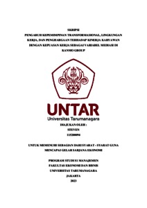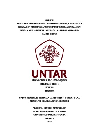 Steven, Steven (2023) PENGARUH KEPEMIMPINAN TRANSFORMASIONAL, LINGKUNGAN KERJA, DAN PENGHARGAAN TERHADAP KINERJA KARYAWAN DENGAN KEPUASAN KERJA SEBAGAI VARIABEL MEDIASI DI KANMO GROUP. Skripsi thesis, Universitas Tarumanagara.