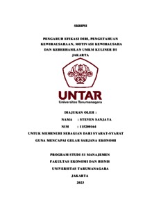 Sanjaya, Steven (2023) P E N G A R U H E F I K A S I D I R I , P E N G E T A HU A N K E W I R A U S A H A A N , M O T I V A S I KE W I R A U S A H A D A N K E B E R H A S I L A N U M K M K U L I N E R DI J A K A R T A. Skripsi thesis, Universitas Tarumanagara.