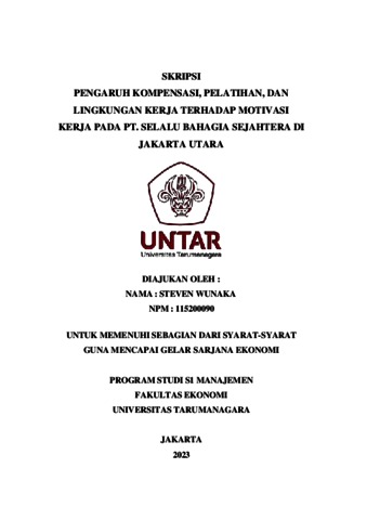 Wunaka, Steven (2023) PENGARUH KOMPENSASI, PELATIHAN, DAN LINGKUNGAN KERJA TERHADAP MOTIVASI KERJA PADA PT. SELALU BAHAGIA SEJAHTERA DI JAKARTA UTARA. Skripsi thesis, Universitas Tarumanagara.