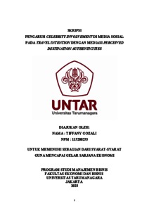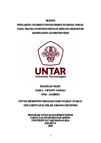 Gozali, Tiffany (2023) PENGARUH CELEBRITY INVOLVEMENT DI MEDIA SOSIAL PADA TRAVEL INTENTION DENGAN MEDIASI PERCEIVED DESTINATION AUTHENTICITIES. Skripsi thesis, Universitas Tarumanagara.